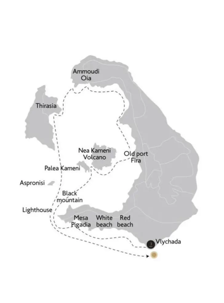 Enjoy a scenic sunset cruise from Vlychada Port, passing Red Beach,White Beach,BlackMountain, and Mesa Pigadia to the Lighthouse. Return to the Red Beach for a wine experience before ending your cruise at Vlychada Port. Includes a Bottle of Premium Local Wine or Moët Champagne on board )